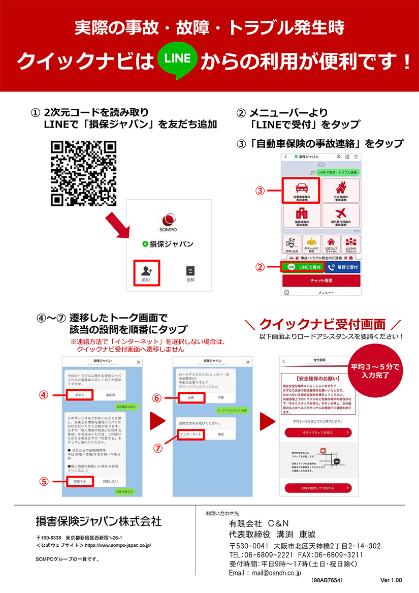 事故・故障・トラブル発生時にクイックナビならLINEから簡単に連絡できます。